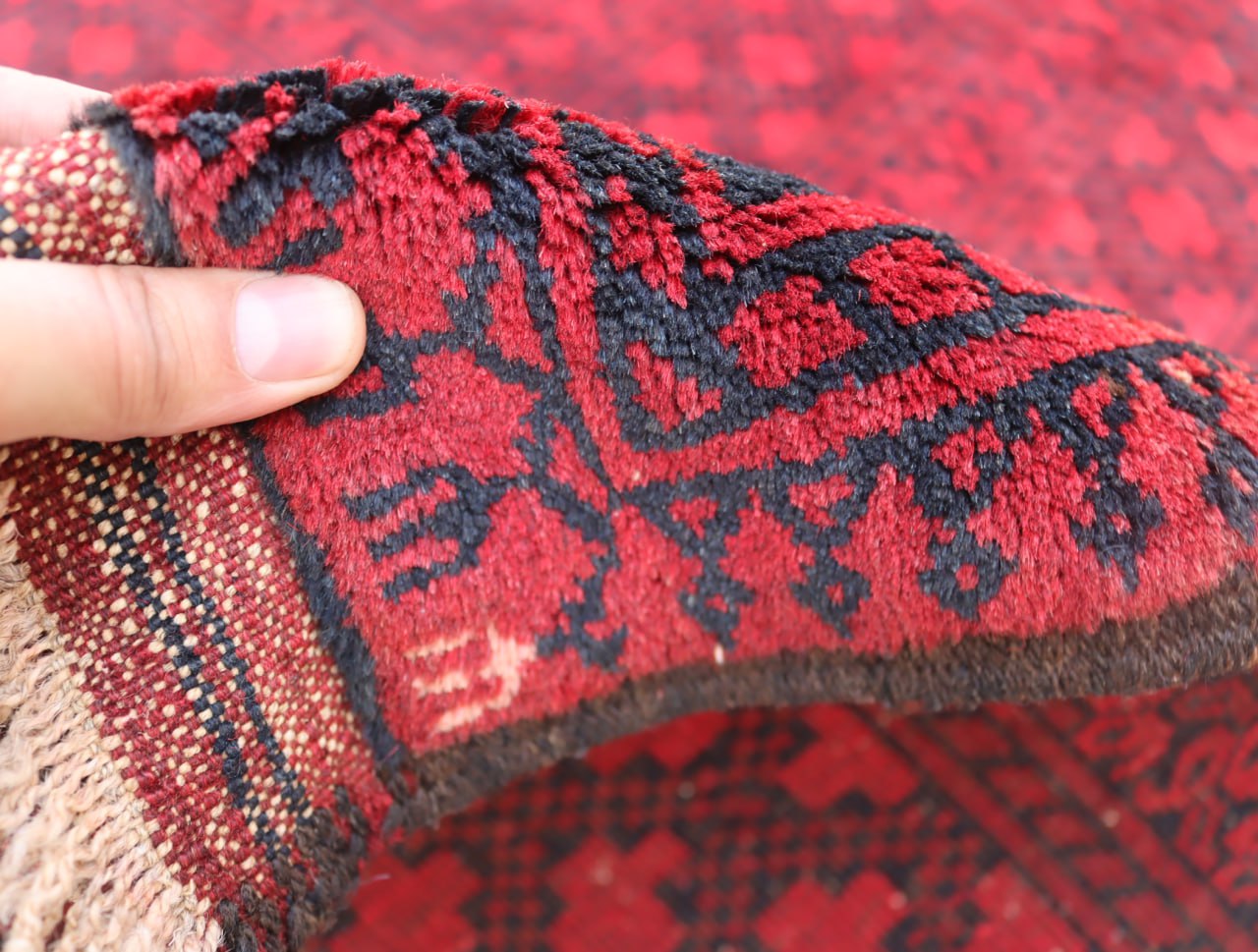 Large Afghan Antique Area Rug, 10,33X12 Ft Collectors Piece Rug, 100% Handspun Wool On Wool Soft Rug, 1940s Red Turkmen Elephant Foot Rug