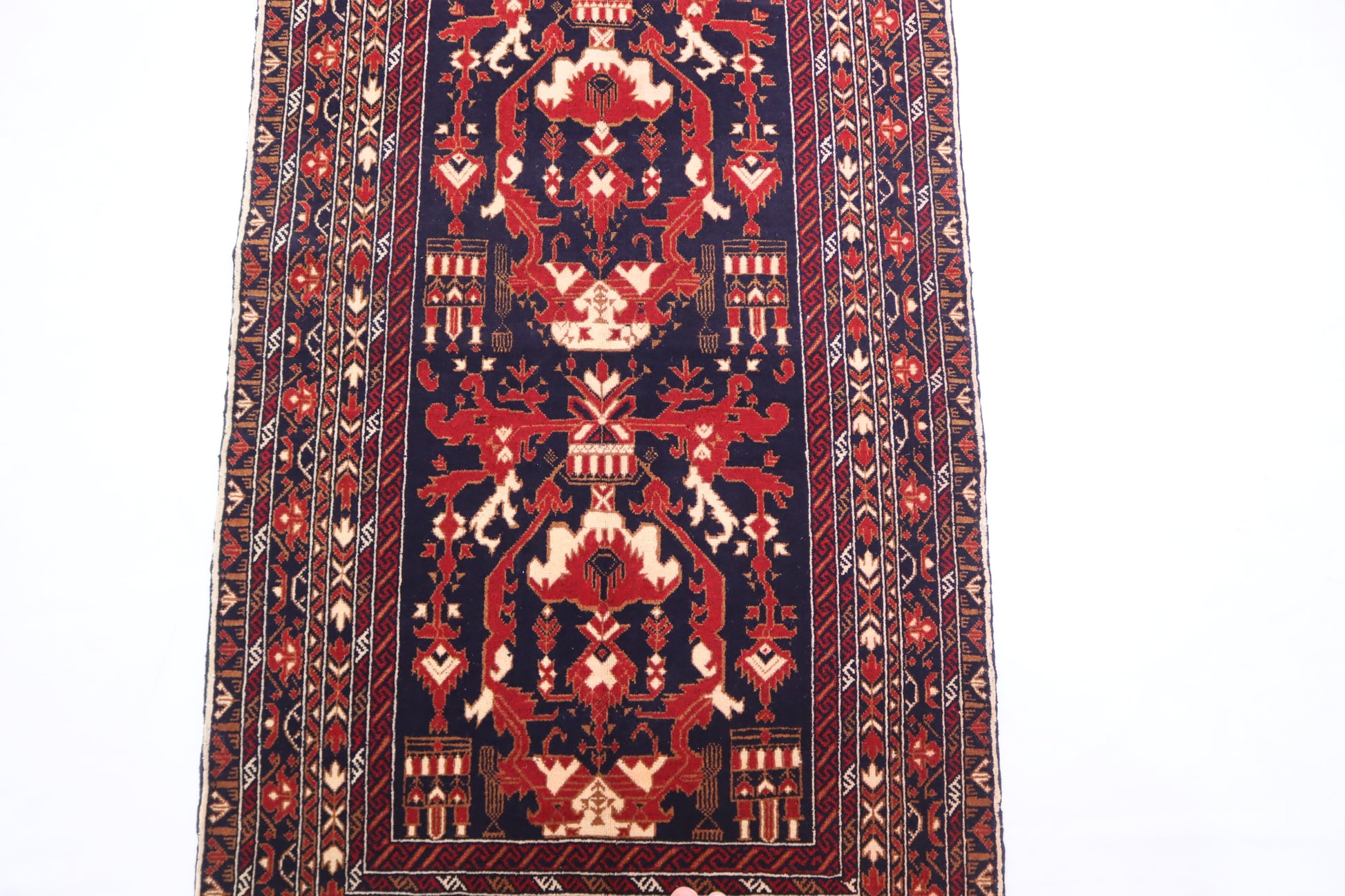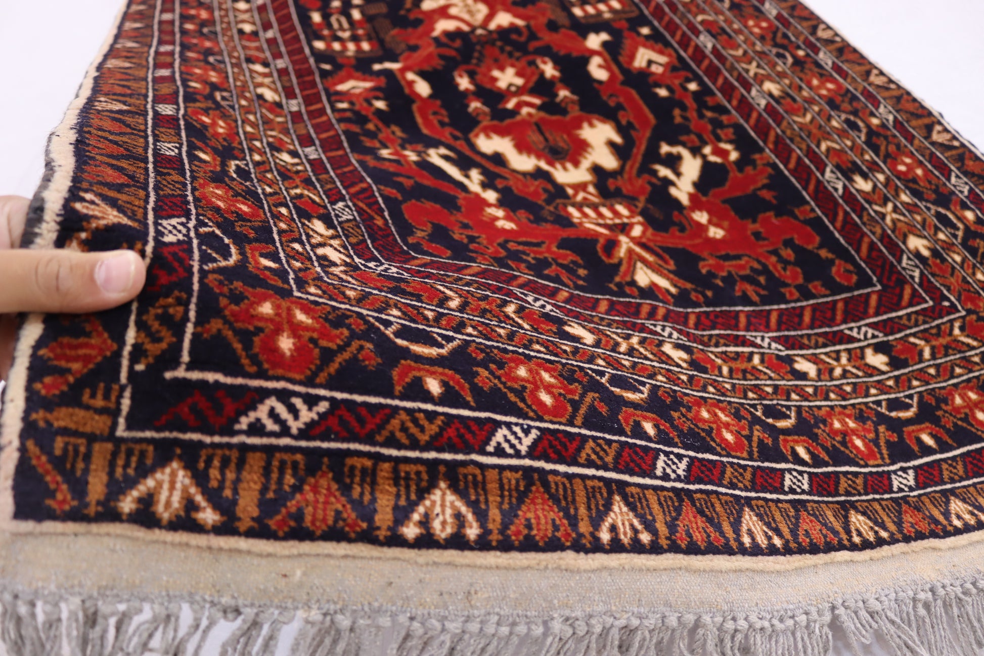 Each thread tells a story of artisan expertise, weaving together a tapestry of tradition and contemporary elegance. The rich textures and vibrant hues creat a warm and inviting atmosphere, turning you home into a haven of comfort and style. Elevate your décor with with this unique piece, where every knot is a testament to the artistry and dedication poured into its creation. Embrace the charm of authenticity and transform your living space into a sanctuary of beauty and craftsmanship.”