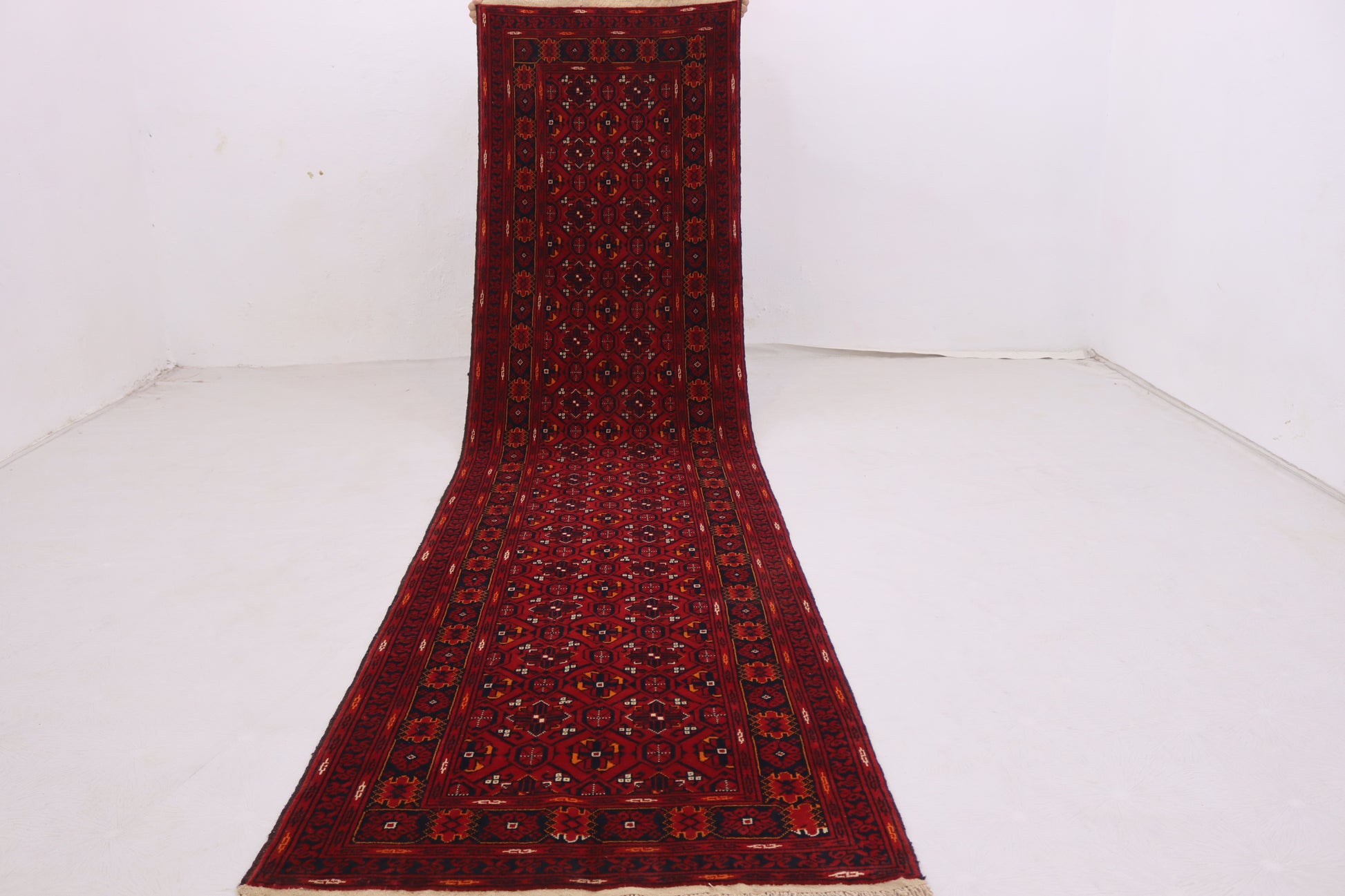 This Carpet is made by Afghan Turkmen Women's from different Villages of Afghanistan with a Unique Techniques, in this carpet Multi colors are used, its best for Living room, Bedroom, Kitchen, Office, Dorm, Entry way, Hallway Runner rug,