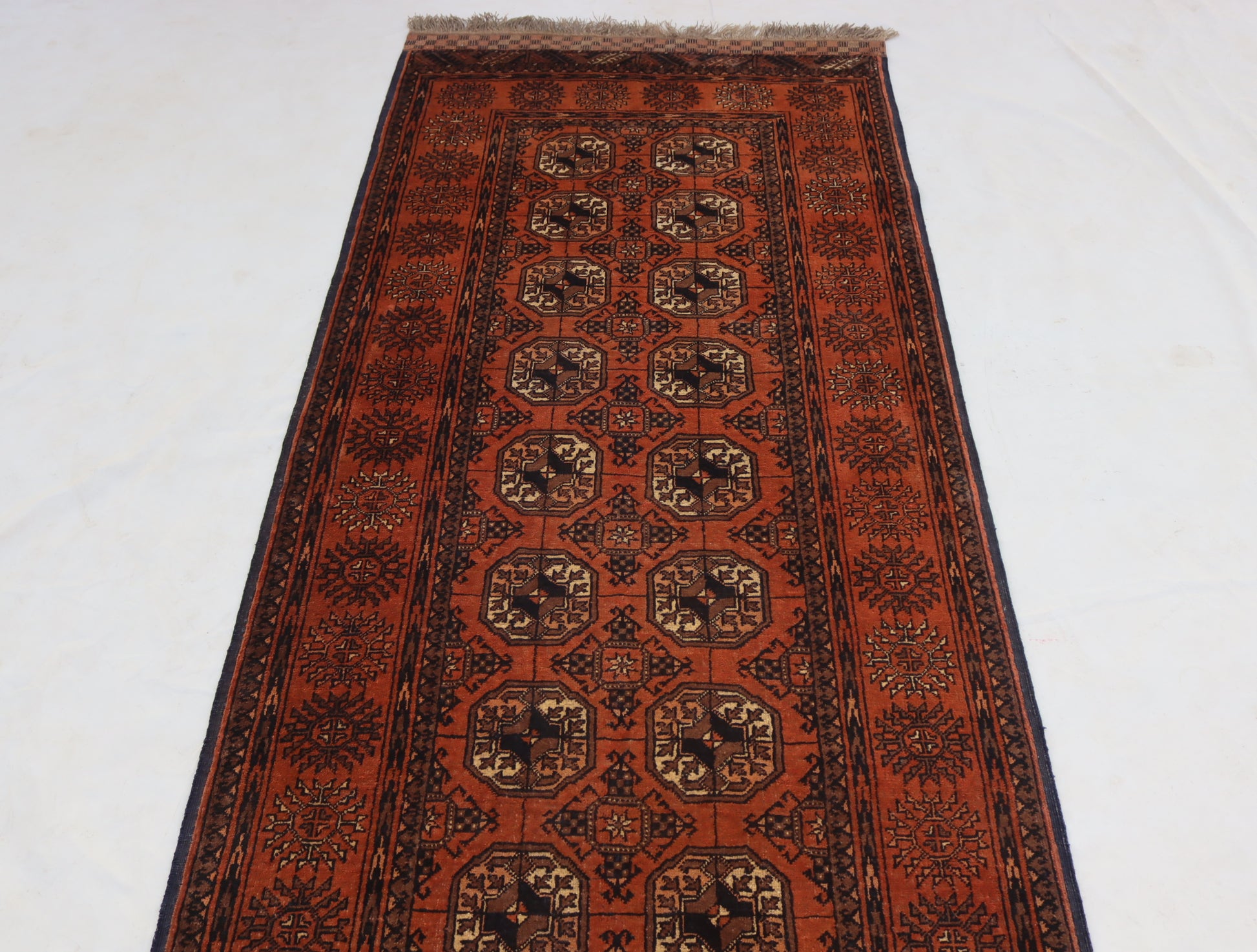 This Carpet is made by Afghan Turkmen Women's from different Villages of Afghanistan with a Unique Techniques, in this carpet Multi colors are used, its best for Living room, Bedroom, Kitchen, Office, Dorm, Entry way, Hallway Runner rug,