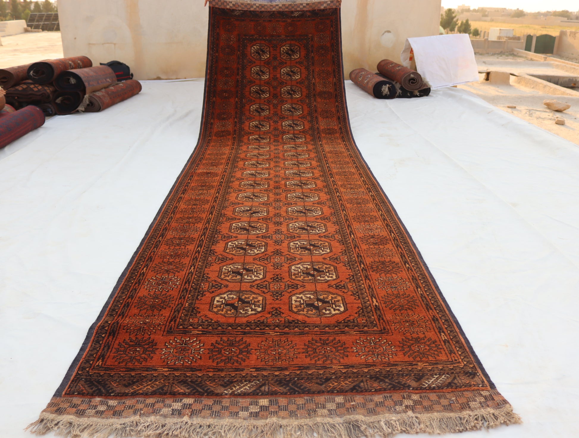 This Carpet is made by Afghan Turkmen Women's from different Villages of Afghanistan with a Unique Techniques, in this carpet Multi colors are used, its best for Living room, Bedroom, Kitchen, Office, Dorm, Entry way, Hallway Runner rug,
