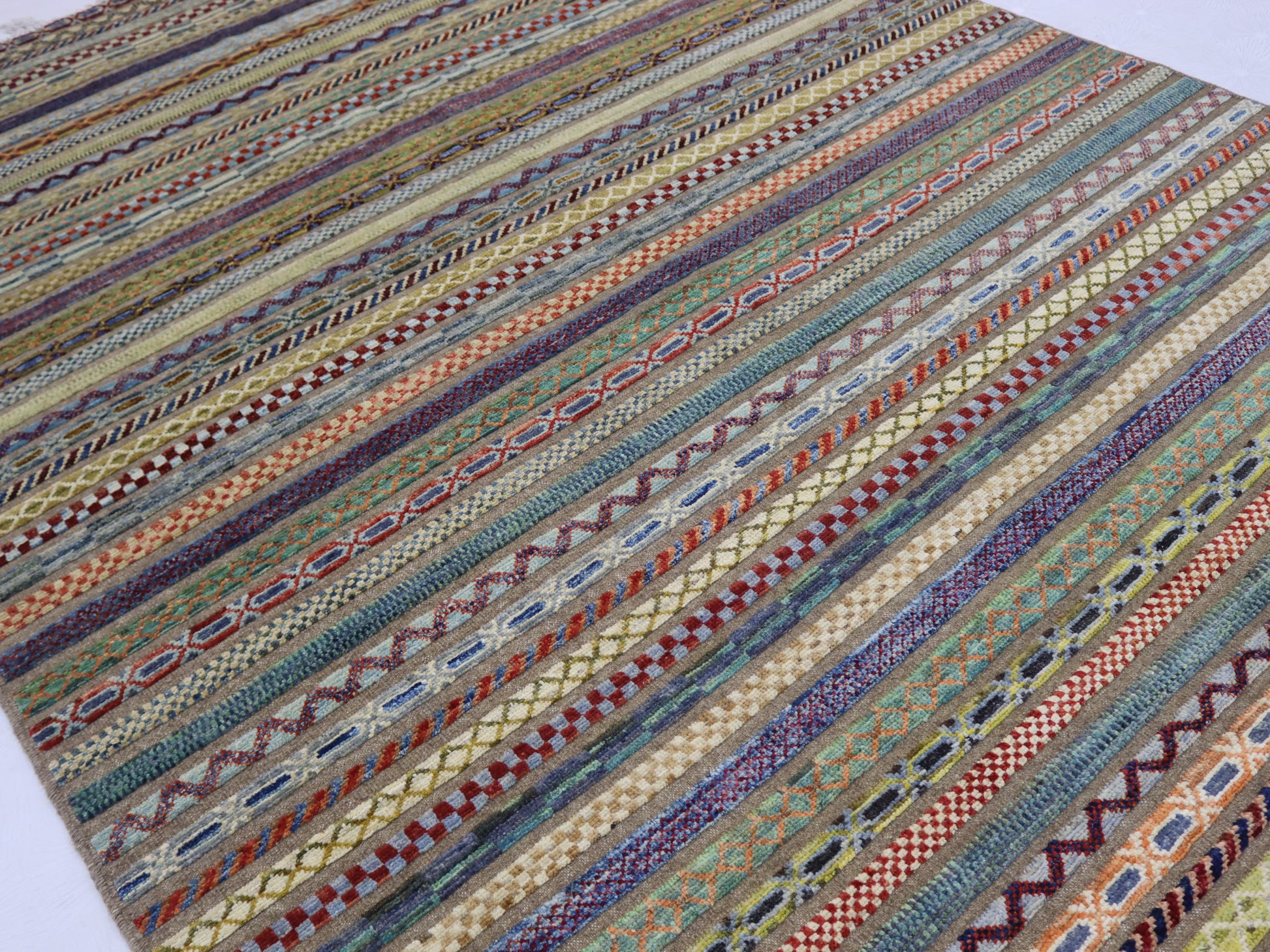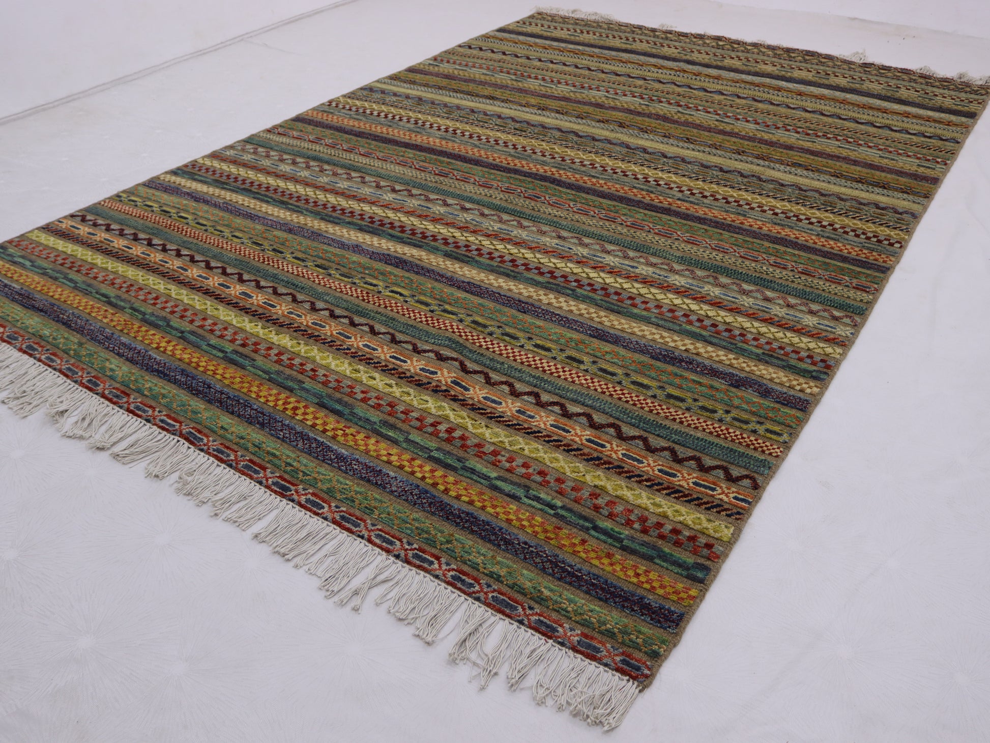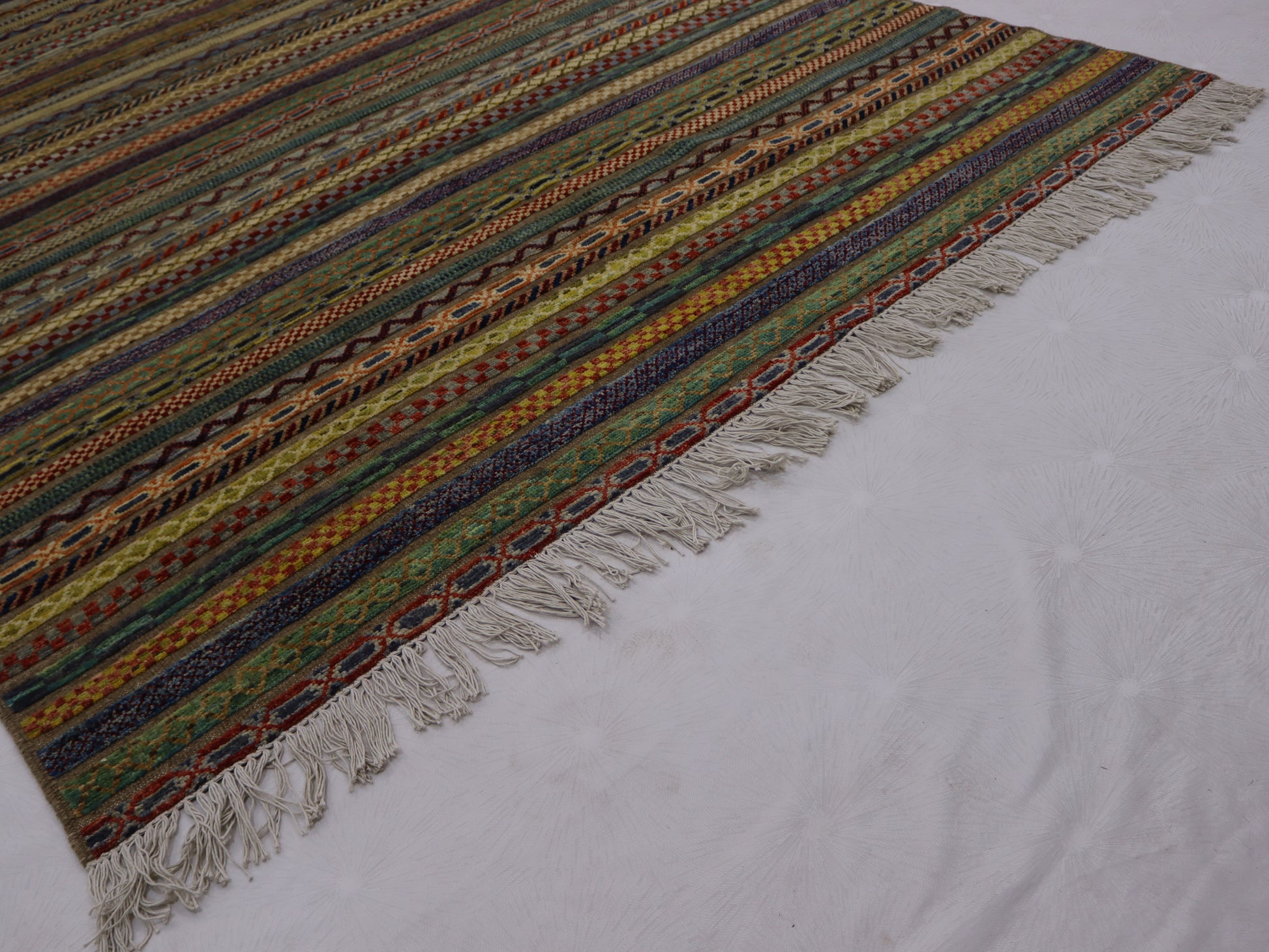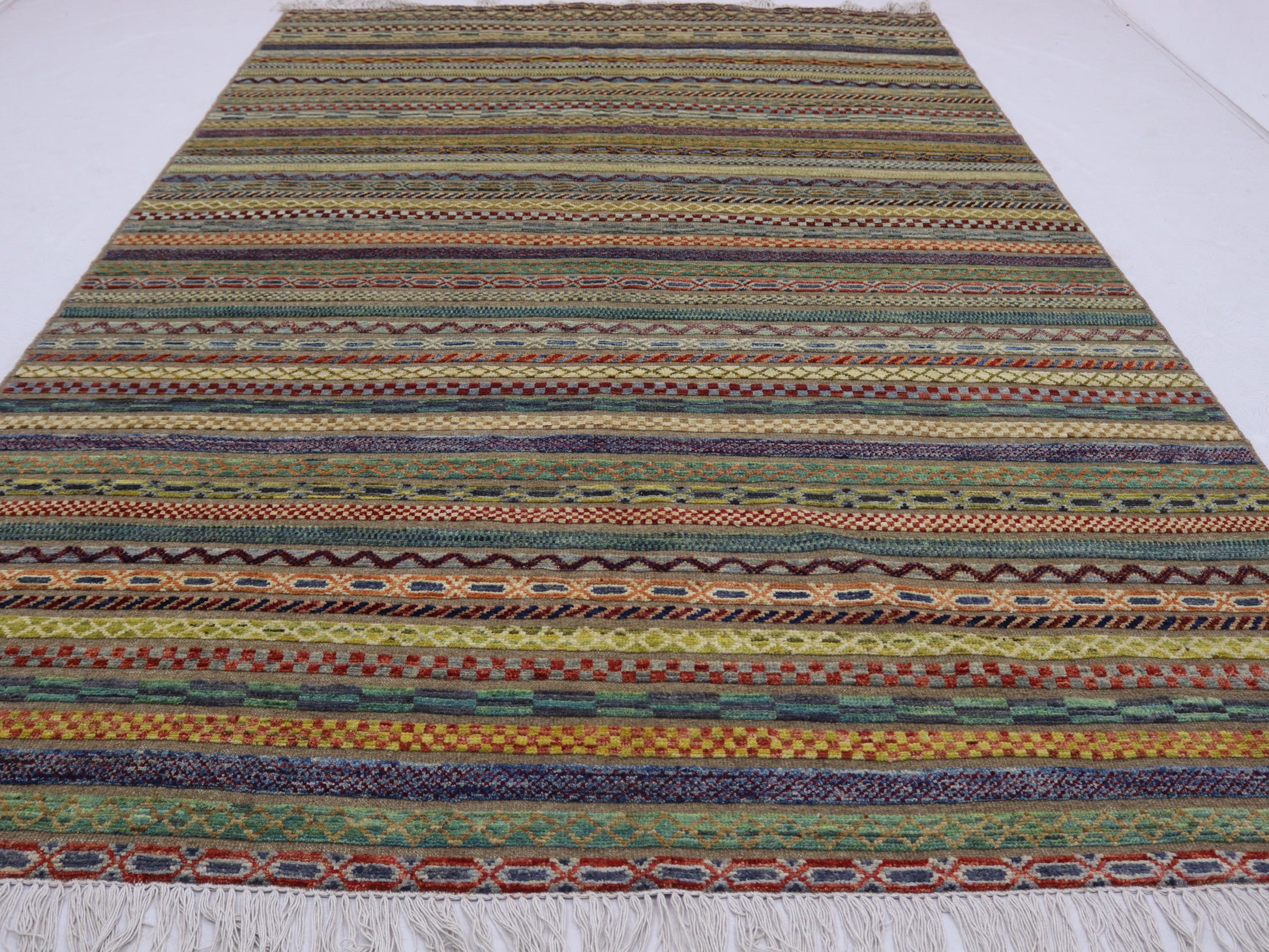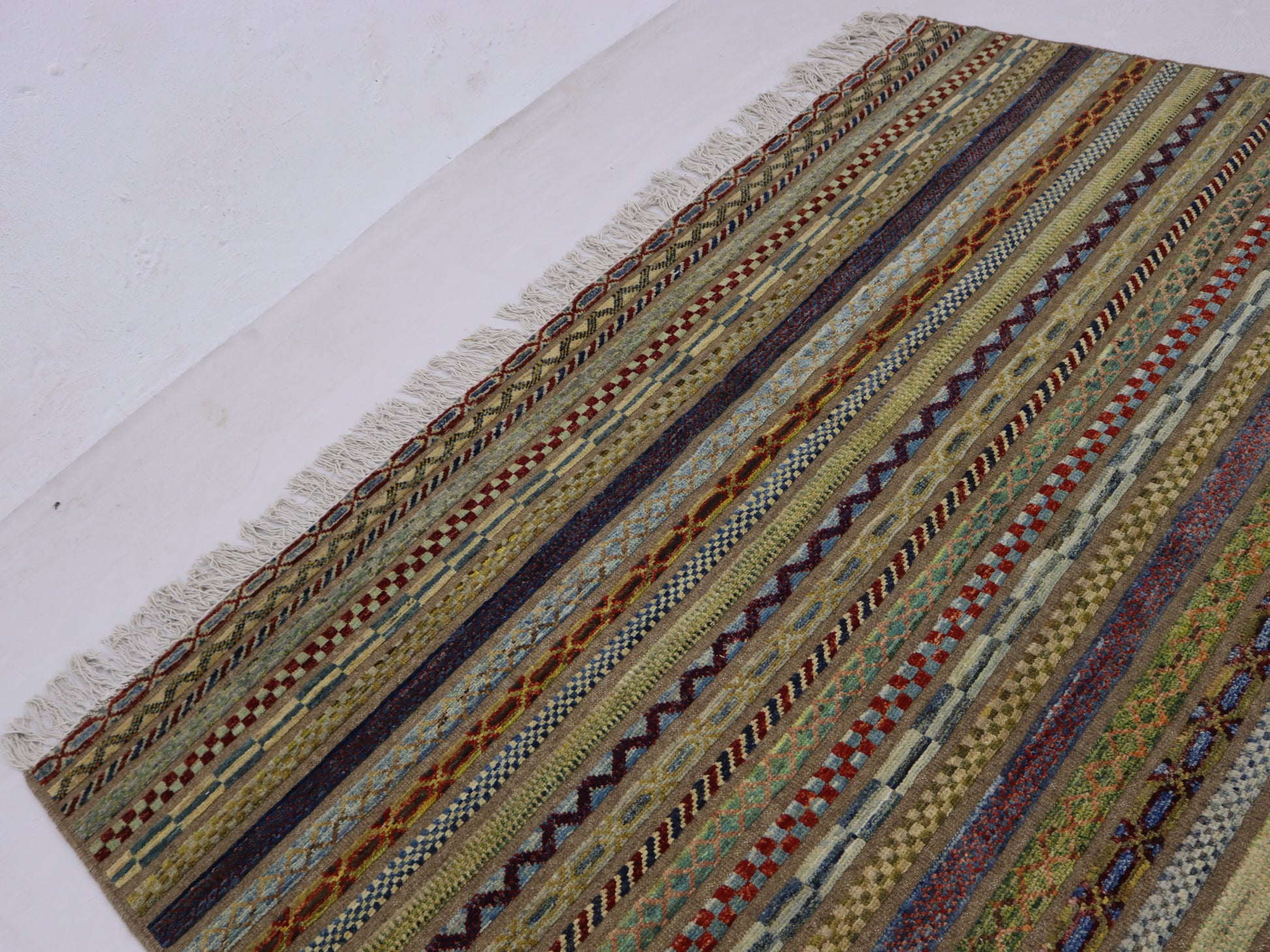 This is an Afghan handmade Barjasta chobi rug. This Beautiful Afghani Rug was hand-knotted by Afghani Turkmen Women in Aqcha village of Northern Afghanistan. The soft wool used in this rug makes it an ideal element for improving a room’s décor.