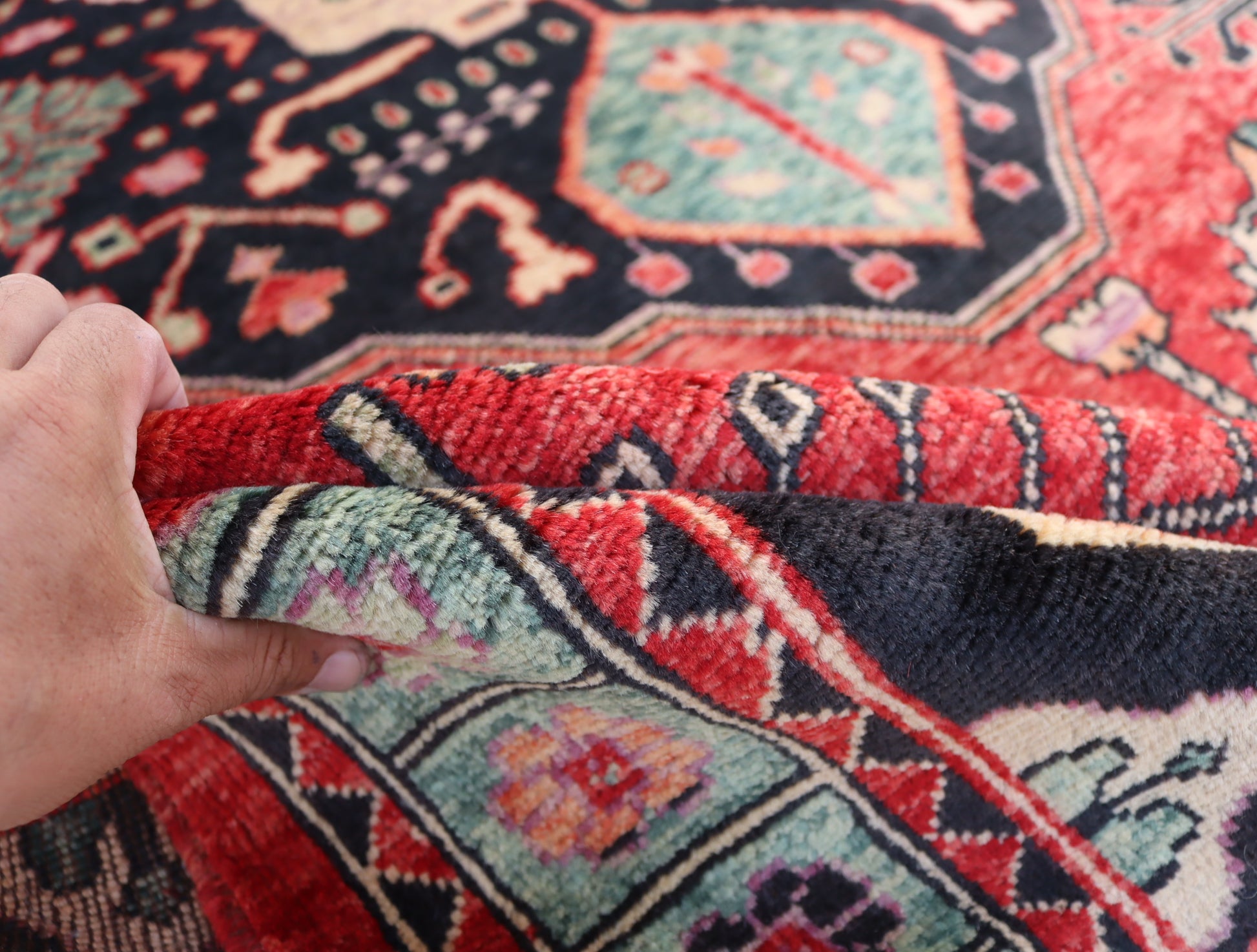 9x10 ft Afghan Oriental Caucasian design Geometric Rug , Turkmen Handmade Wool Area Rug, for Bedroom, Living Room, Bohemian Rug