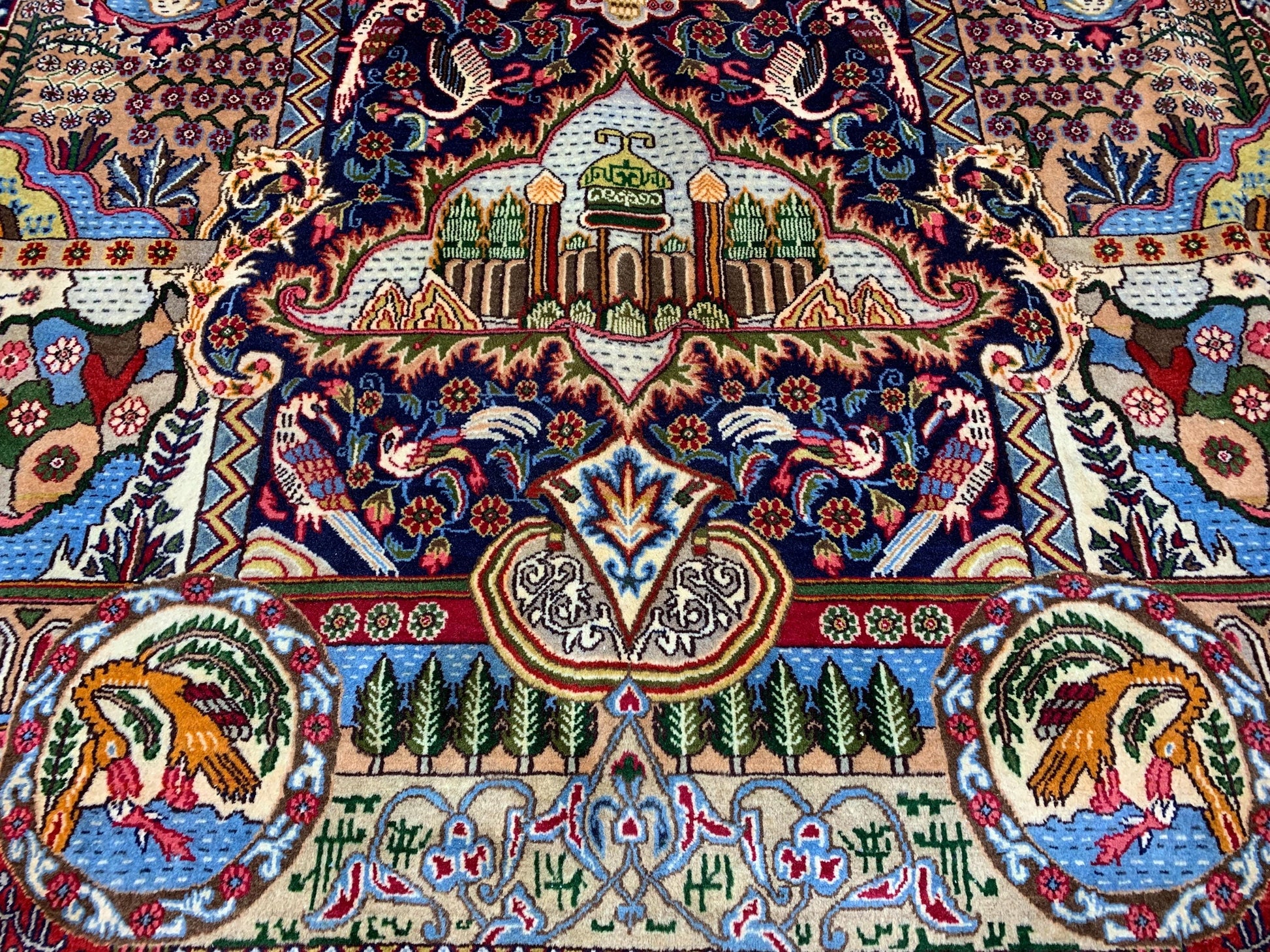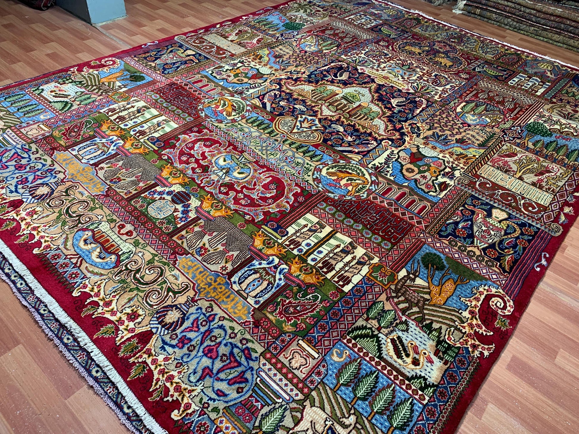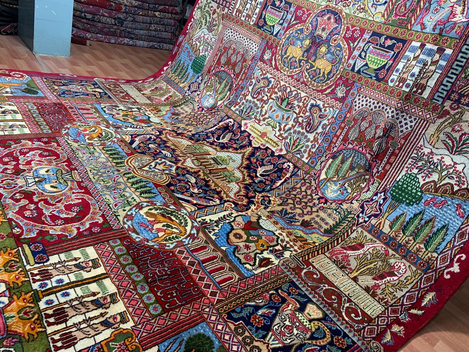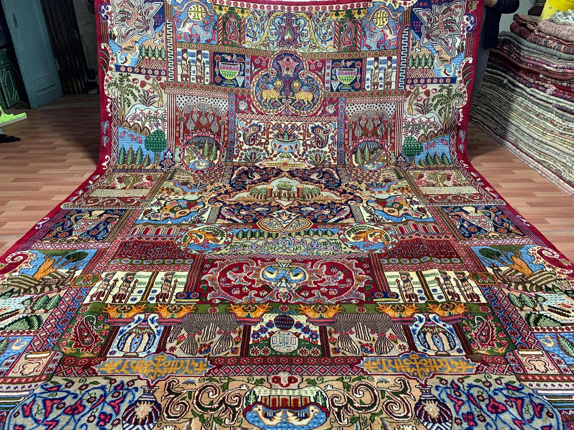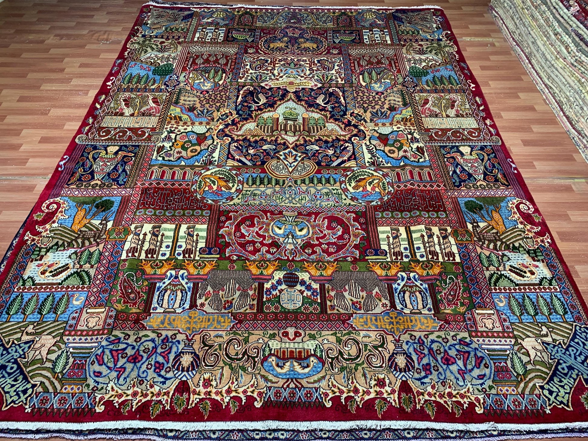 Large Pictorial Rug 10x13 ft Handmade Afghan Rug Animal Hunting Scene Rug Shikar Gah Rug High Pile